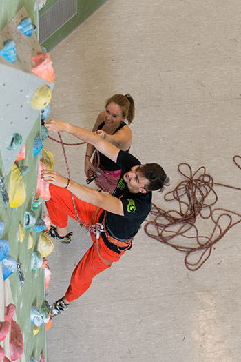 Lerne die Grundlagen des Sicherns für das Klettern im Toprope indoor.
