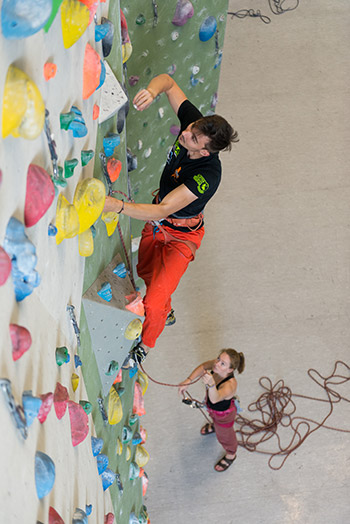 Wenn Du schon gut im Toprope kletterst und begeistert die Kletterer an der Vorstiegswand beobachtest, ist der Vorstiegskurs das Richtige für Dich. Er führt Dich vom Topropeklettern in das Vorsteigen, das heißt, es ist noch kein Seil oben in der Umlenkung eingehängt.